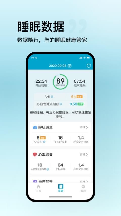 根据睡眠数据生成报告,帮助用户了解当前健康指数。