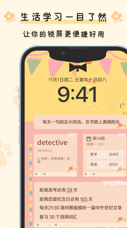 布丁锁屏壁纸作为一个实用工具手机软件,布丁锁屏壁纸精选超多优质的锁屏壁纸推荐,非常的可爱少女心,同时能够体院到锁屏的高效,可以在桌面上为你显示你的待办事项,还有非常多实用的小功能,在这里有很多个性的锁屏推荐给你,你可以将倒数日纪念日代办事项记录等设置在锁屏之上,功能非常贴合用户现在的生活,爱五子棋网为大家带来的v4.3.0apk包对手机型号也很友好,喜欢实用工具的用户不妨来体验一下!