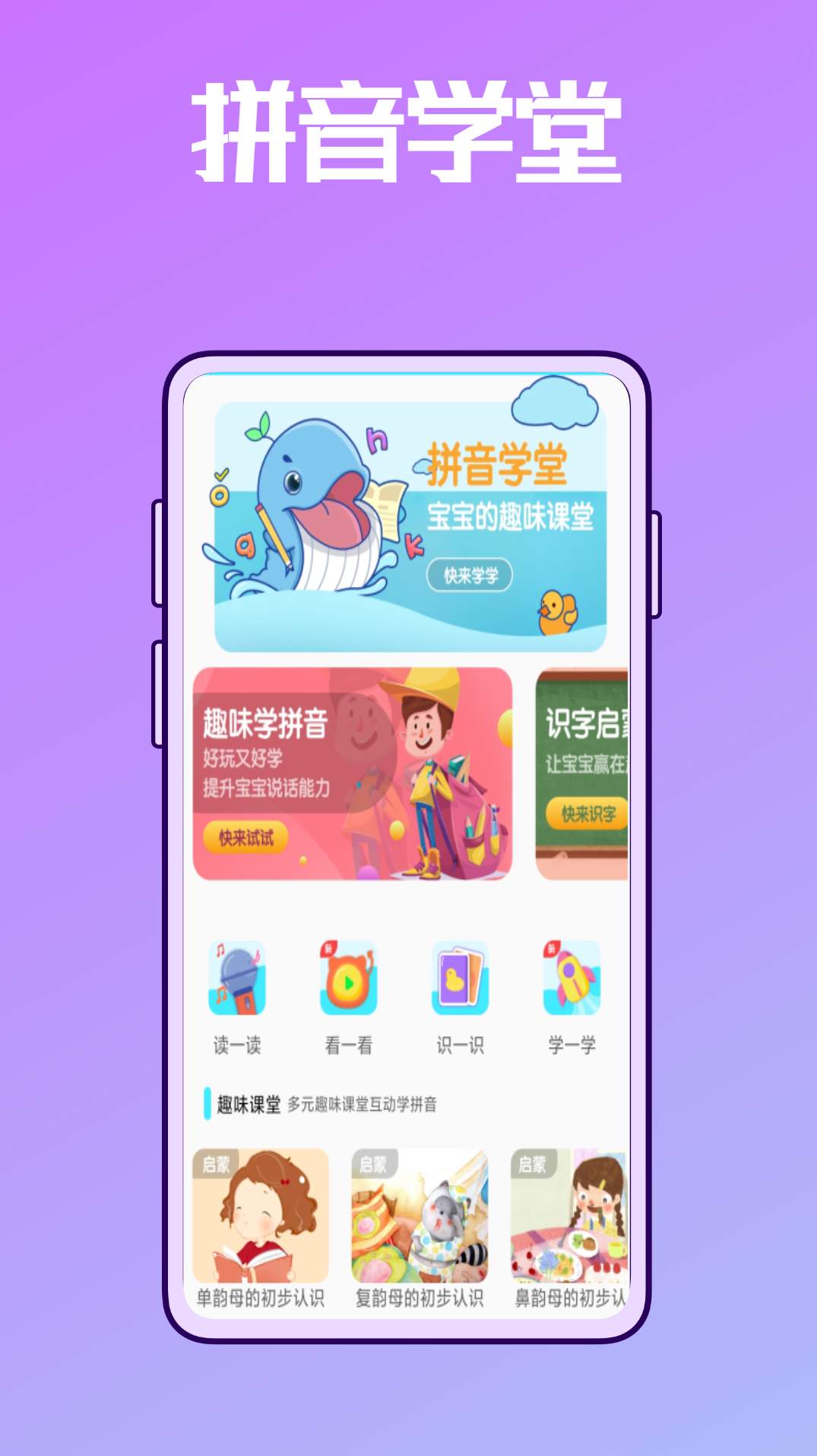拼音学习练习鸭作为一个学习教育手机软件,孩子们可以一边的看视频也能一边的学习,记录学习进度,加上更多的好玩的学习模式,一键即可实时的打卡,让宝宝们可以更好的去体验,给大家提供的是一站式的学习服务,如点读拼读在线跟读模式,以检验学习成果,它将拼音学习过程变得趣味盎然,功能非常贴合用户现在的生活,爱五子棋网为大家带来的v1.0.2apk包对手机型号也很友好,喜欢学习教育的用户不妨来体验一下!